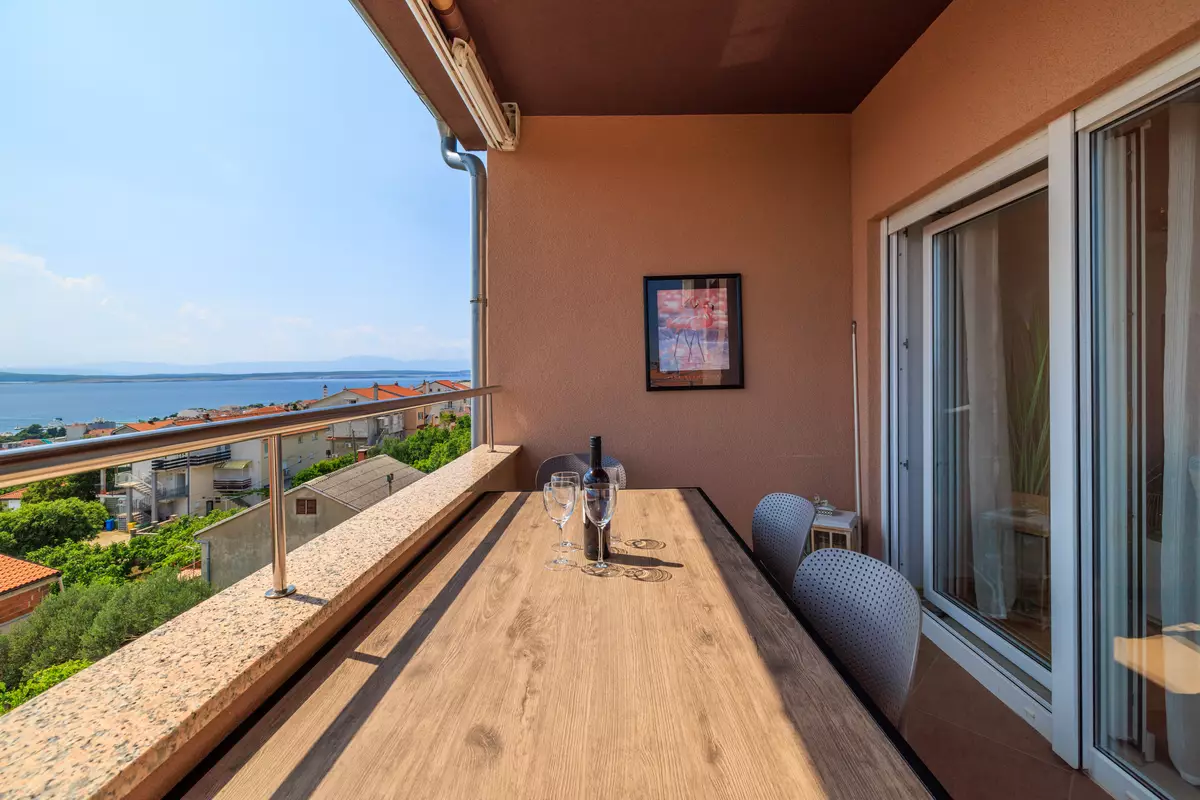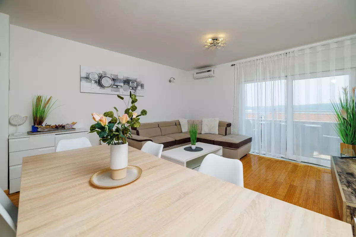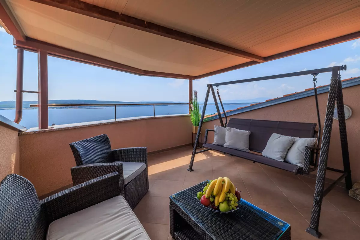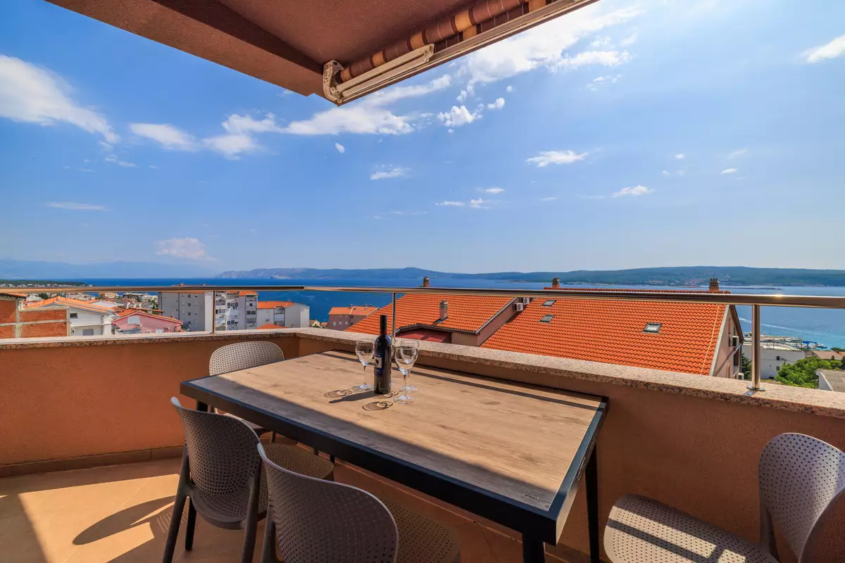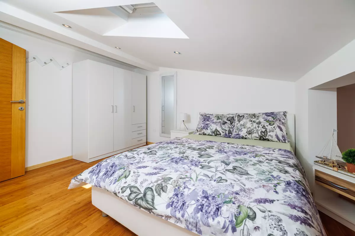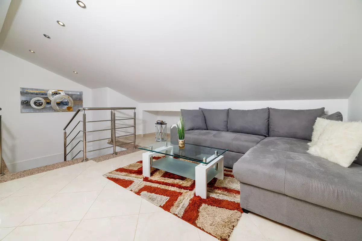 Die Ferienwohnung verläuft auf 2 Etagen, der Eingang zur Wohnung befindet sich im 2. Obergeschoss. Ausgestattet mit einem grossen Wohn - und Essbereich mit Küche , einem zusätzlichem Wohnbereich, 4 Schlafzimmer, 2 Badezimmer und 2 möblierte Balkone mit einem traumhaften Meerblick.