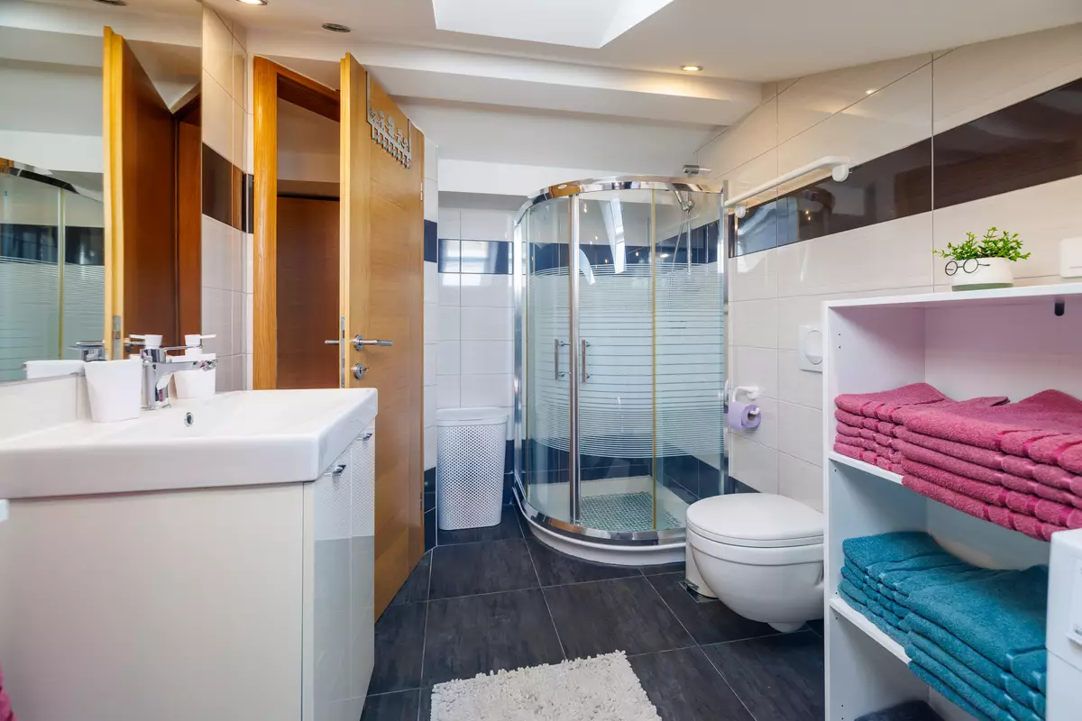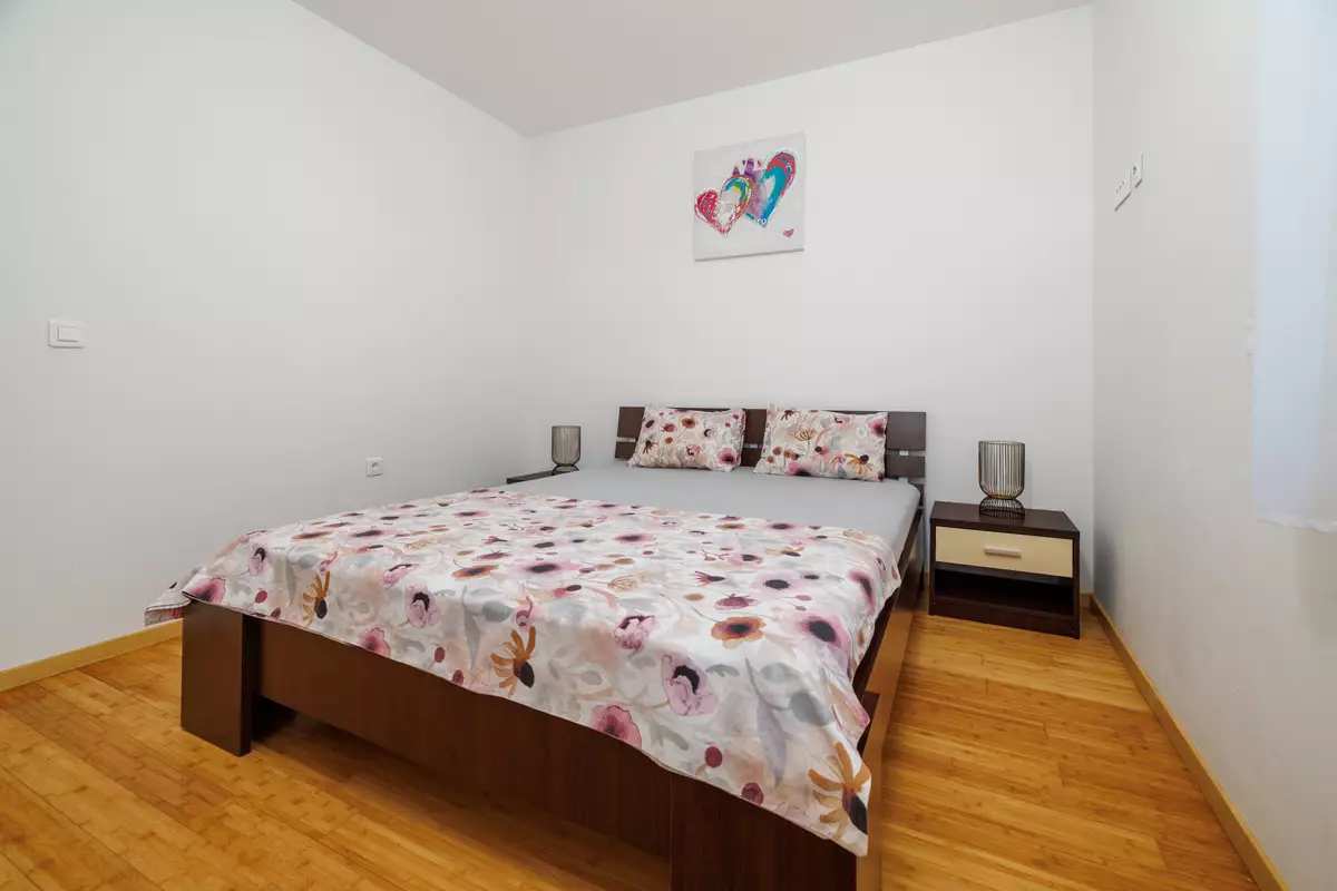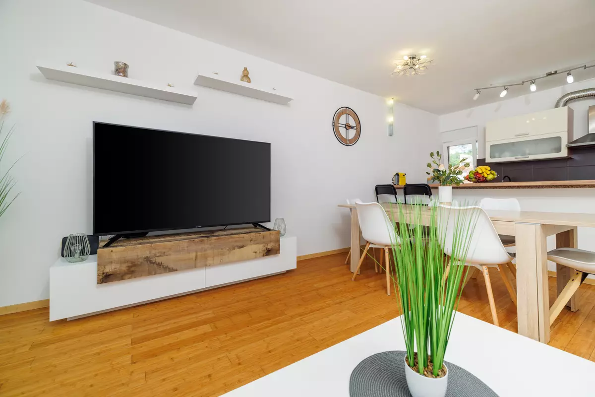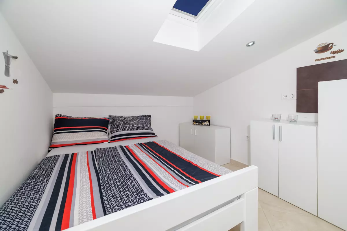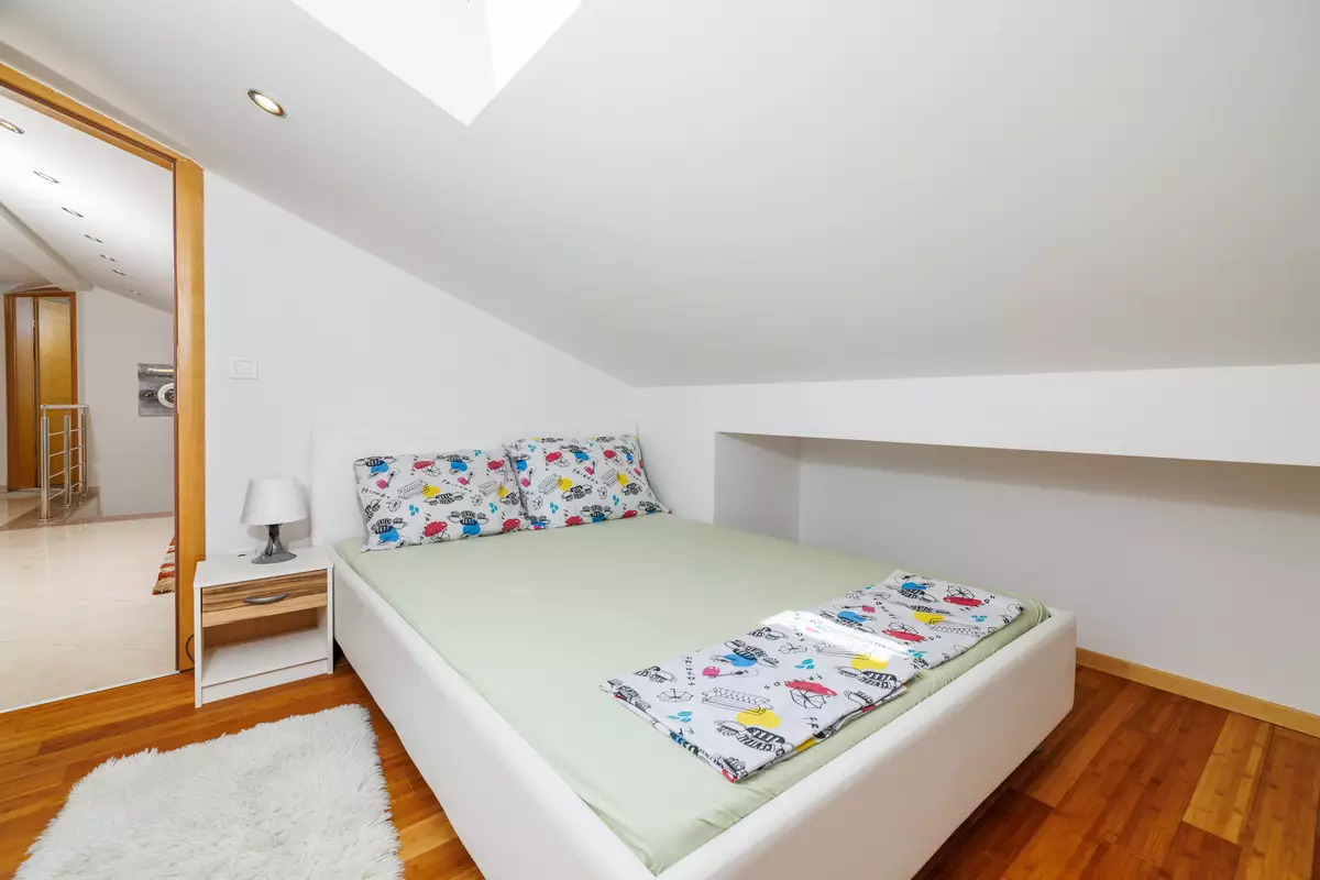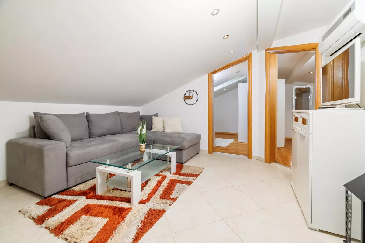 Die Ferienwohnung verläuft auf 2 Etagen, der Eingang zur Wohnung befindet sich im 2. Obergeschoss. Ausgestattet mit einem grossen Wohn - und Essbereich mit Küche , einem zusätzlichem Wohnbereich, 4 Schlafzimmer, 2 Badezimmer und 2 möblierte Balkone mit einem traumhaften Meerblick.