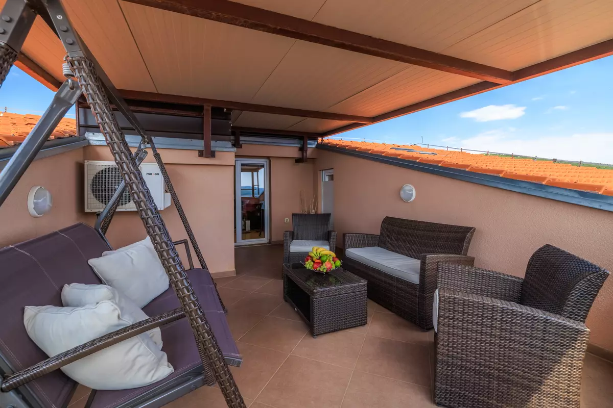 Balkon, teilweise überdacht, Meerblick, Bestuhlung,Balkongröße: 20 m²