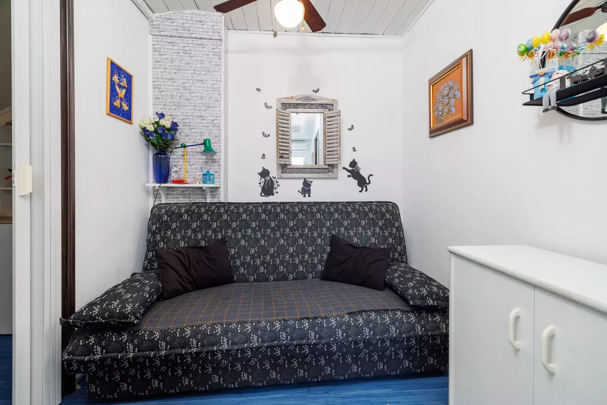 Living/dining room and kitchen are one room, sofa bed for 1 person, access to balcony/terrace, sea view, laminate flooring