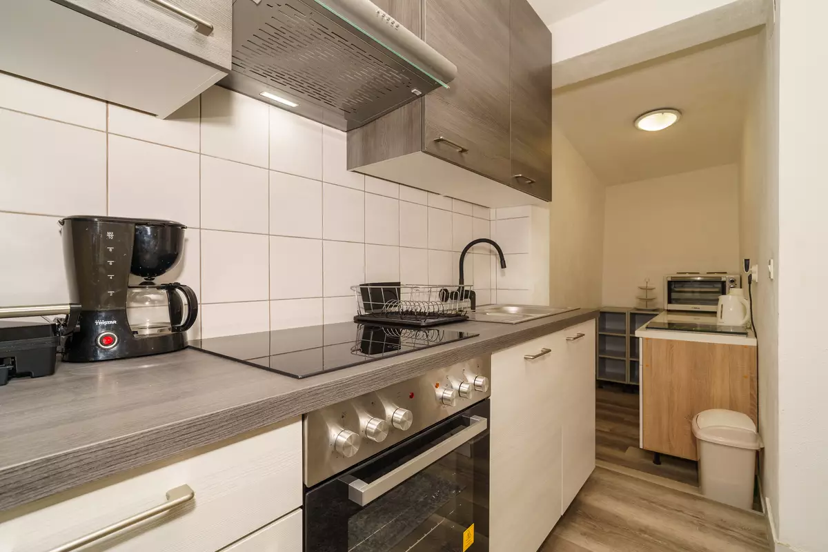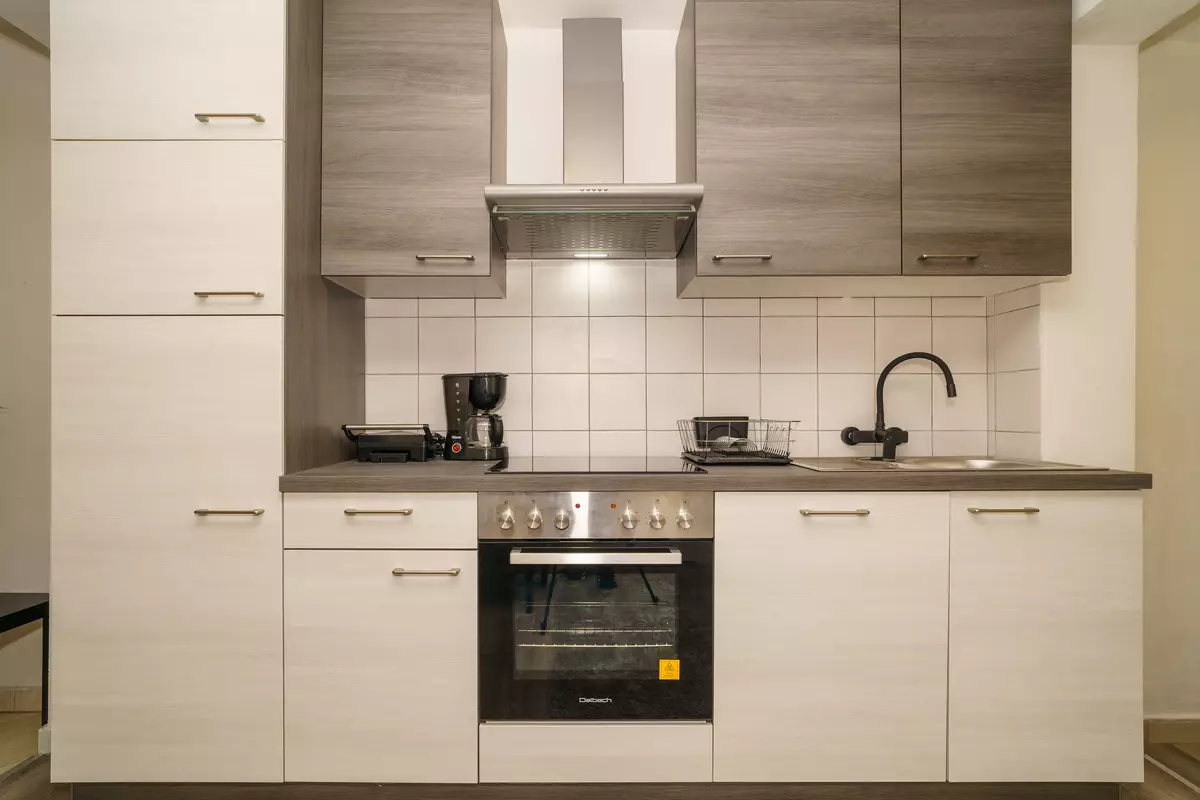 kuhinja, posuđe, kuhinjski krpe, kombinirani štednjak struja/plin, ploče za kuhanje:4, pećnica, hladnjak bez zamrzivača, filter aparat za kavu