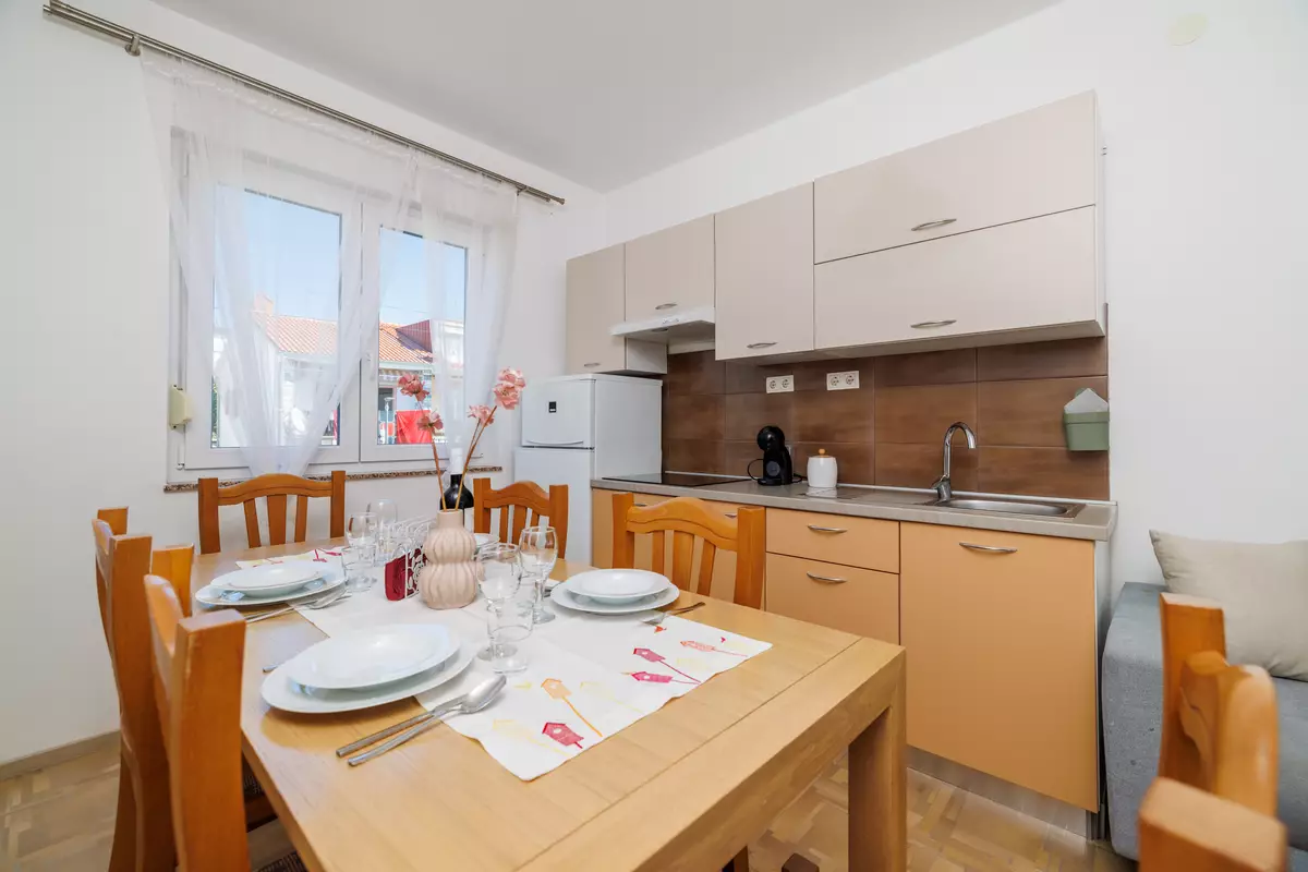 Roštilj, parking u sklopu objekta, bazen, veličina bazena: 24 m², vanjski tuš, kućni ljubimci nisu dozvoljeni, klima uređaj uključen u cijenu, vlasnik živi u istoj kući, posteljina na raspolaganju, ručnici na raspolaganju, sušilo za kosu, perilica rublja u apartmanu, internet putem W-LAN-a