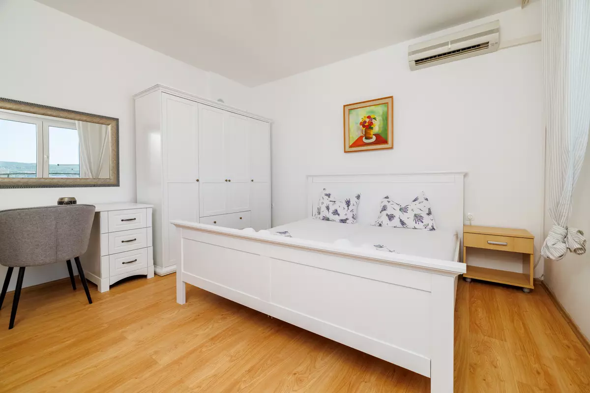 Na 2. katu nalazi se blagovaonica/kuhinja, dvije spavaće sobe svaka s bračnim krevetom i krevetom za jednu osobu, spavaća soba s bračnim krevetom, dvije kupaonice i prekrasan balkon s fantastičnim pogledom na more.