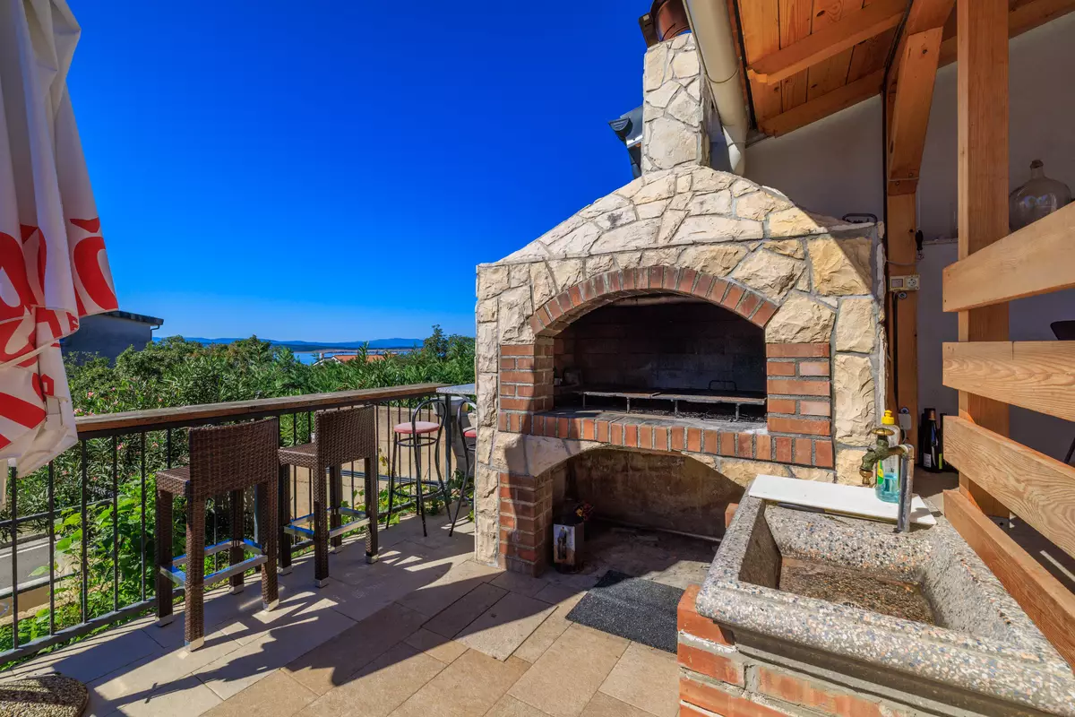 Na 2. katu nalazi se blagovaonica/kuhinja, dvije spavaće sobe svaka s bračnim krevetom i krevetom za jednu osobu, spavaća soba s bračnim krevetom, dvije kupaonice i prekrasan balkon s fantastičnim pogledom na more. Izvan kuće nalazi se središnji dio posjeda – prekrasan bazen opremljen s 10 ležaljki i vanjskim tušem, idealan za sunčanje i uživanje tijekom toplih dana. Prostrana terasa i zona za roštilj dodatno obogaćuju vanjski prostor, p...