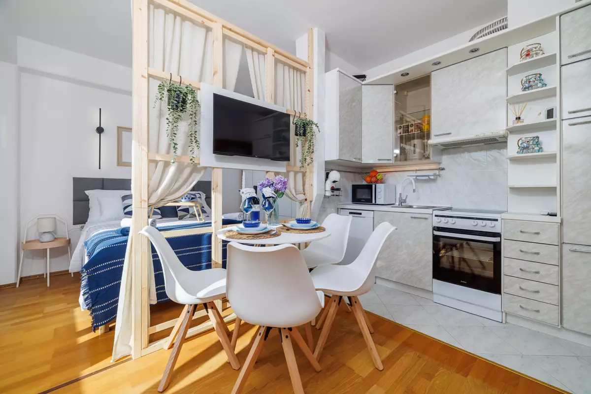 Studio od 30 m² nalazi se na drugom katu i nudi dobro osmišljen raspored s otvorenim dnevnim boravkom, spavaćom sobom i blagovaonicom.
